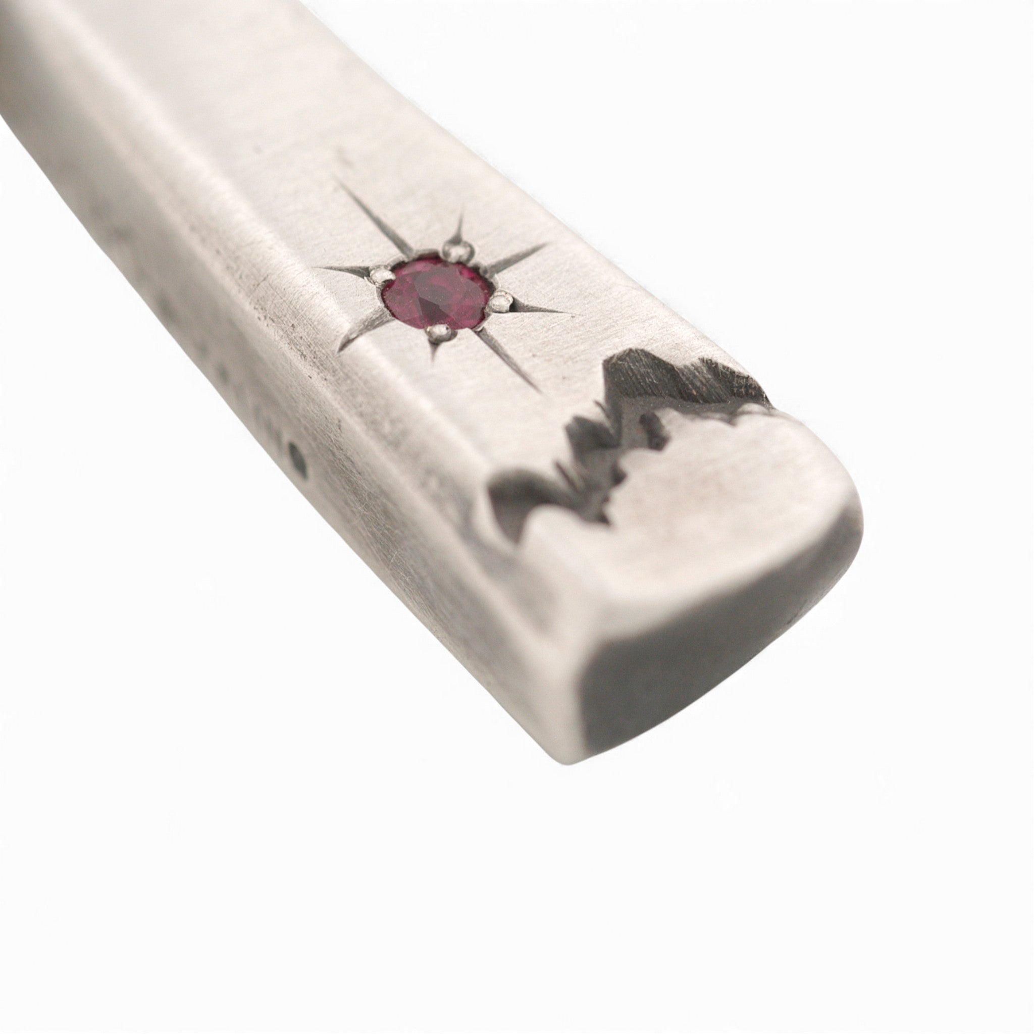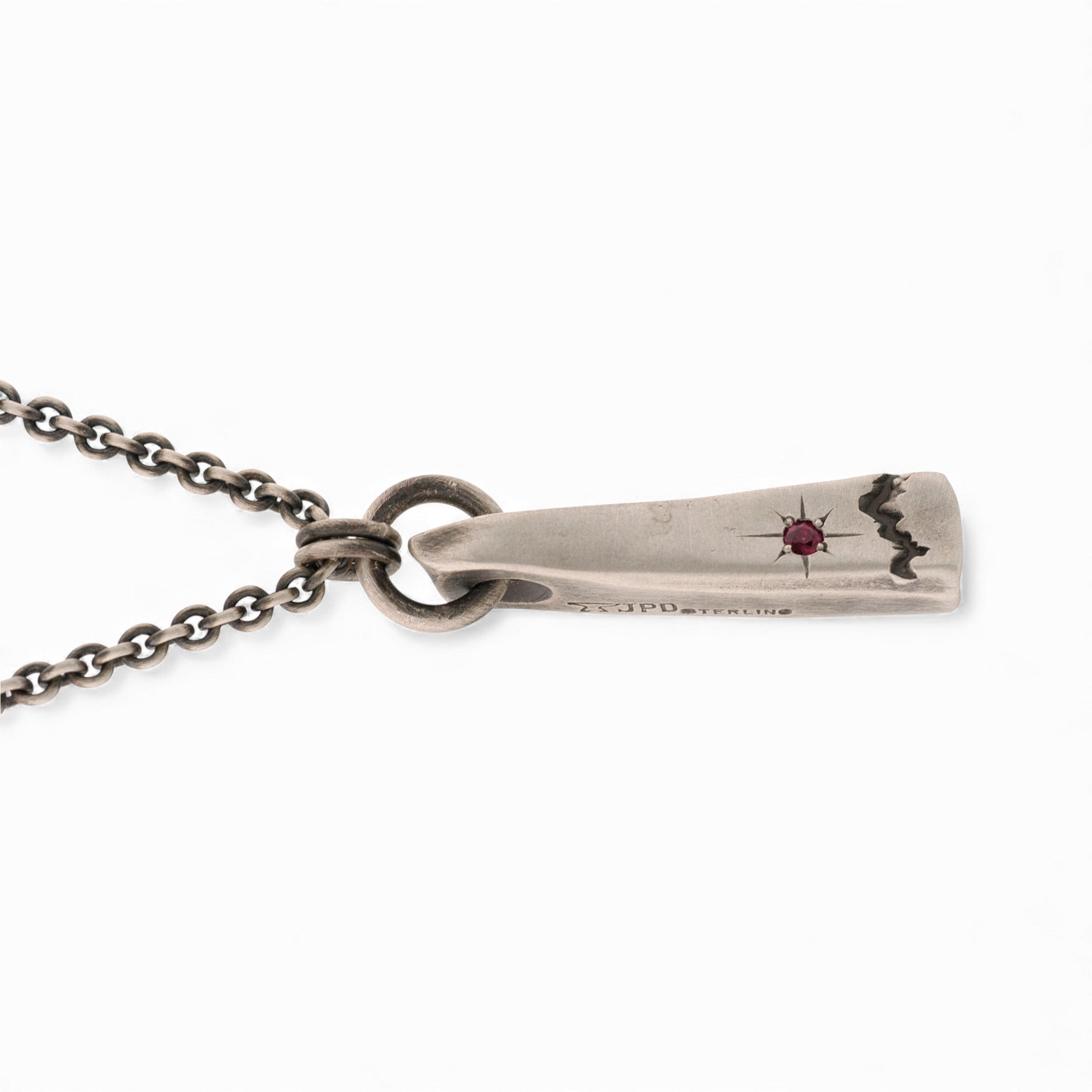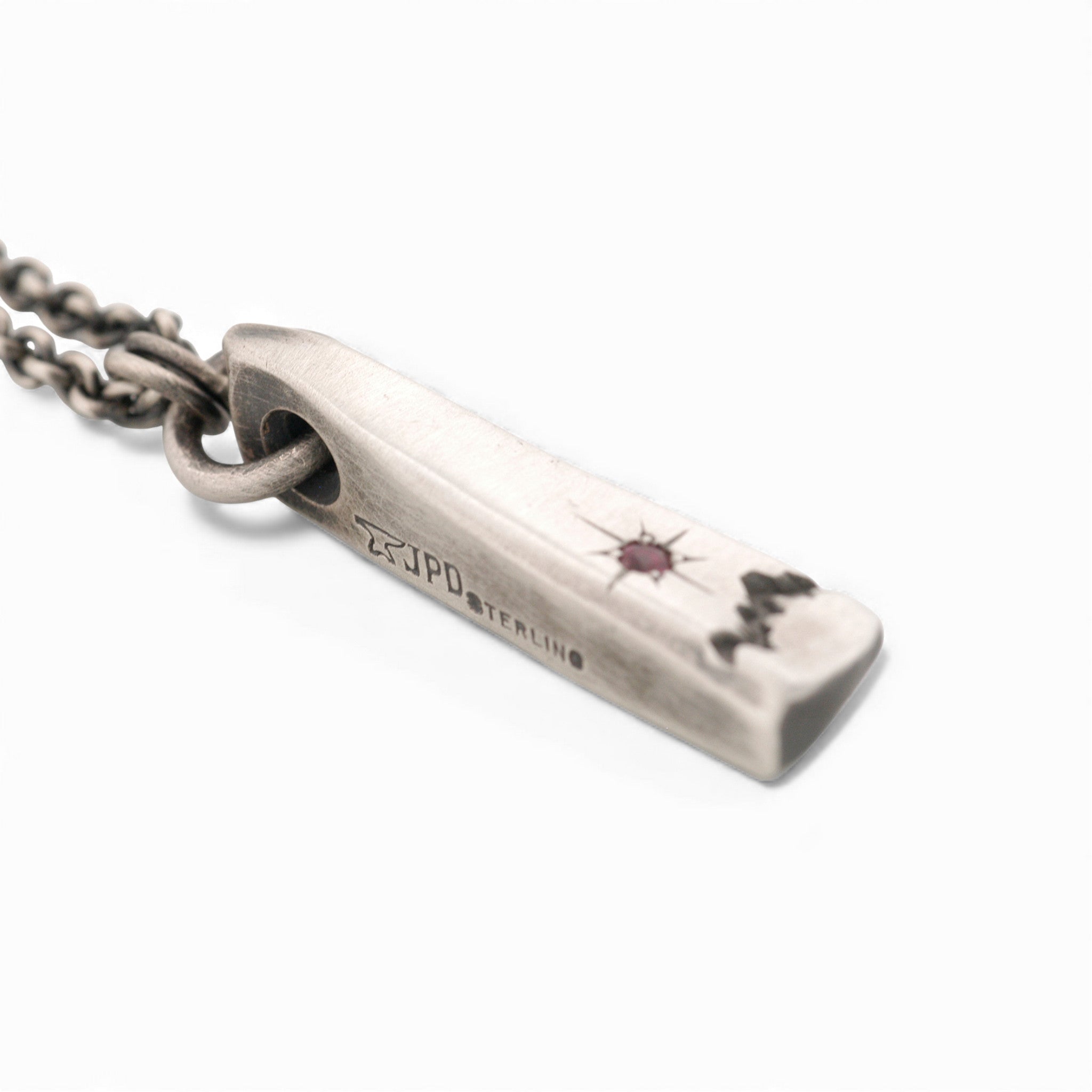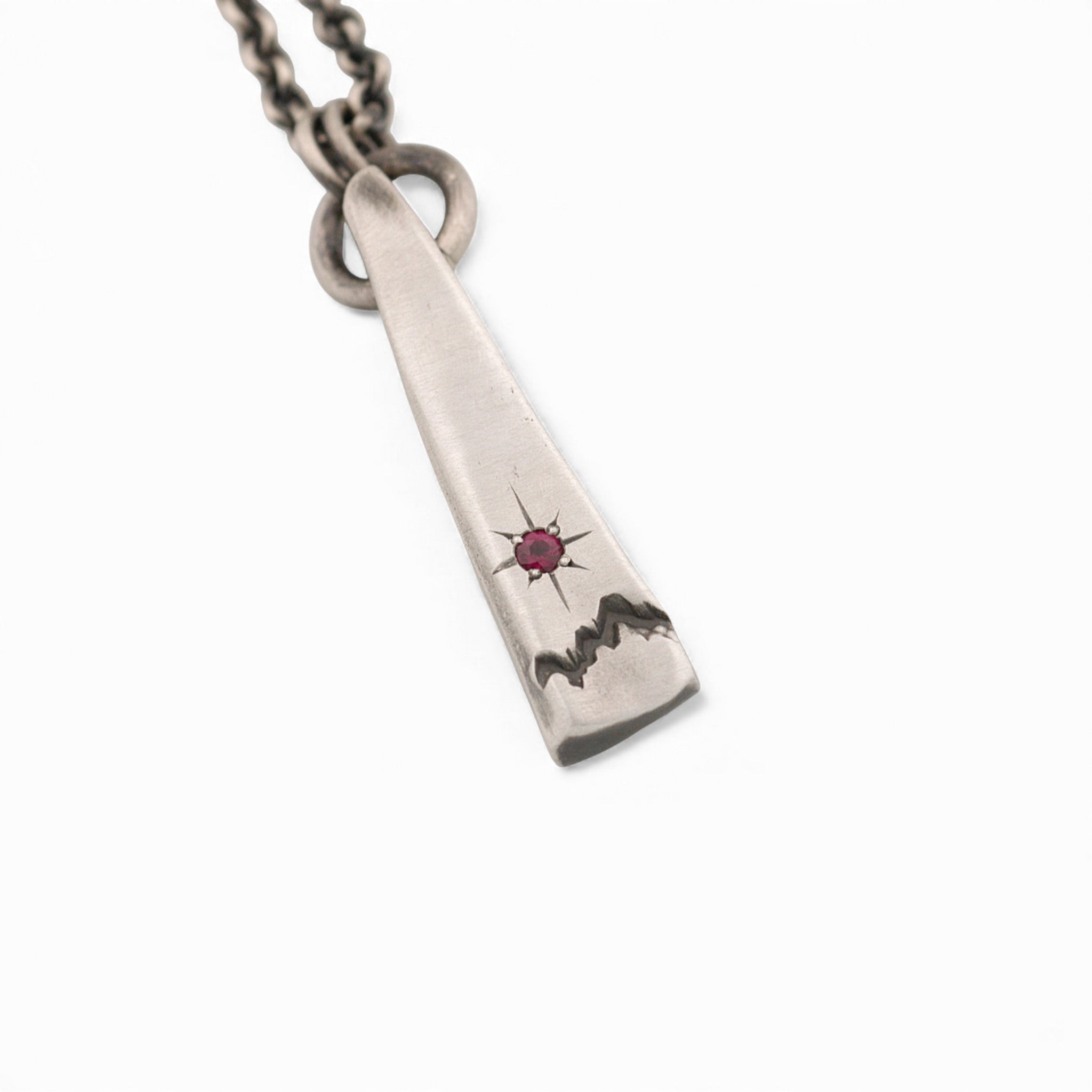 Forged Sterling Silver Series Silo Pendant with custom John Paul stamped mountains and a Ruby Moon.
