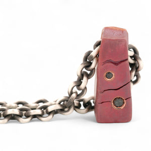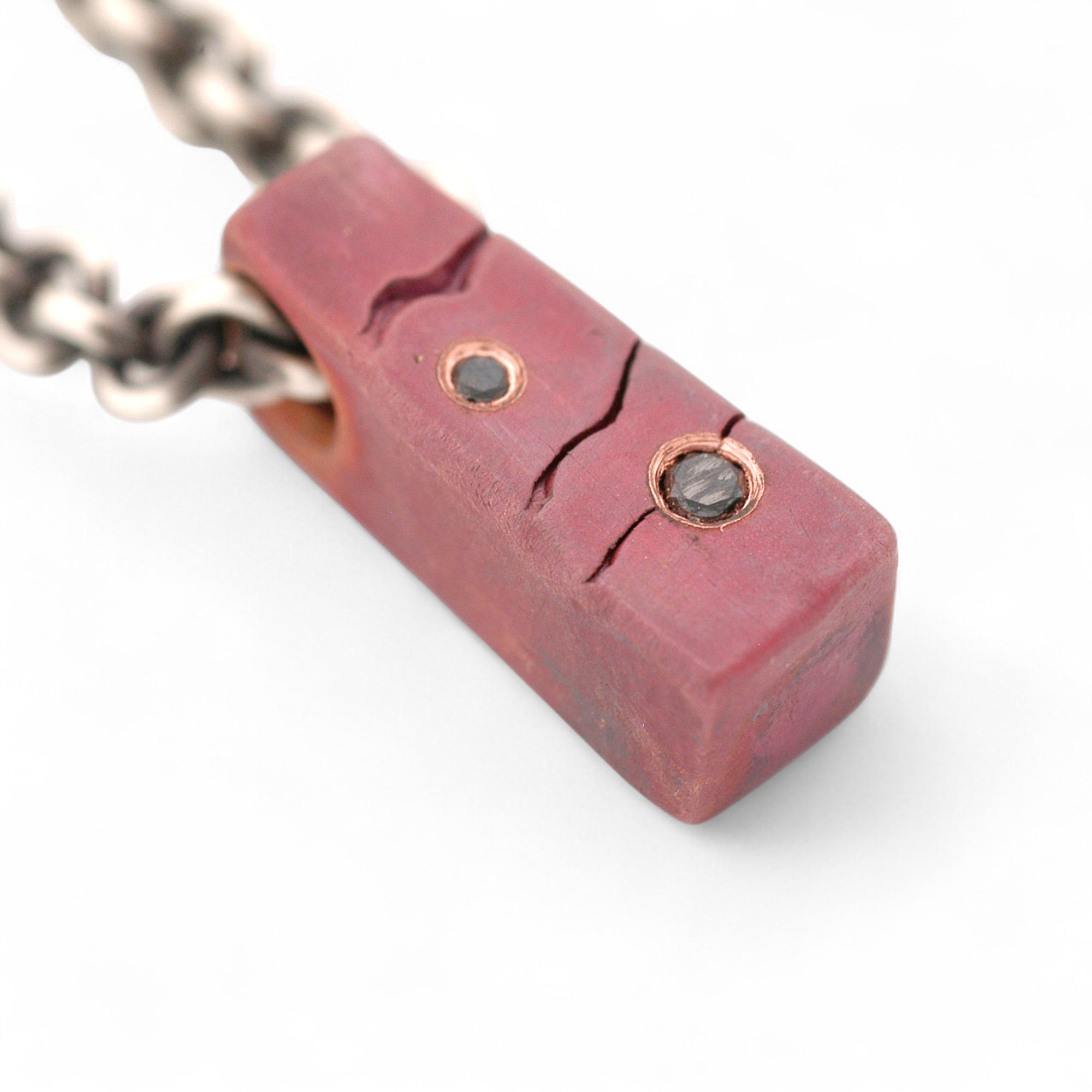 Hand-forged copper with 2 black diamonds over the mountains on a heavy sterling silver cable chain.