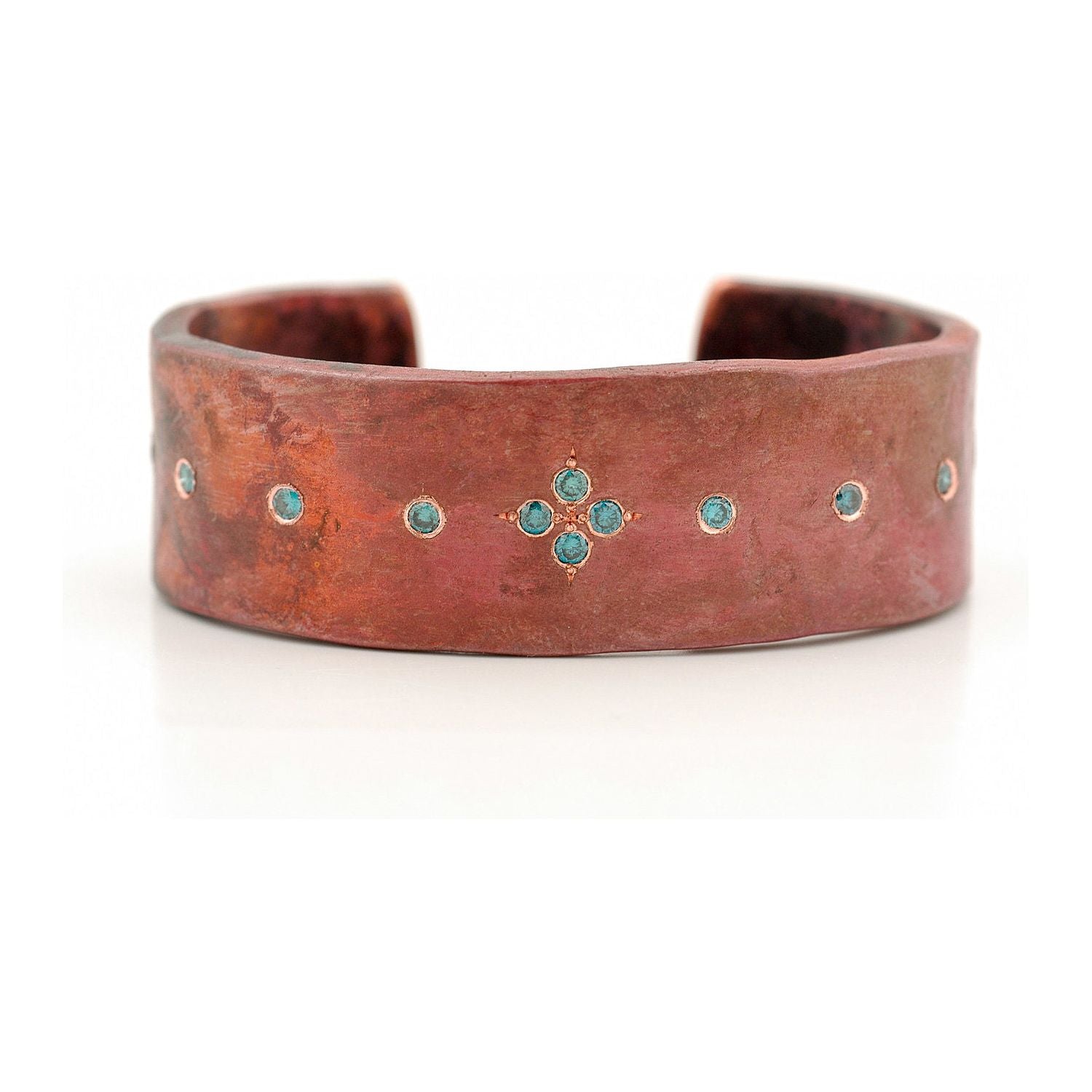 Forged copper cuff with blue diamonds.