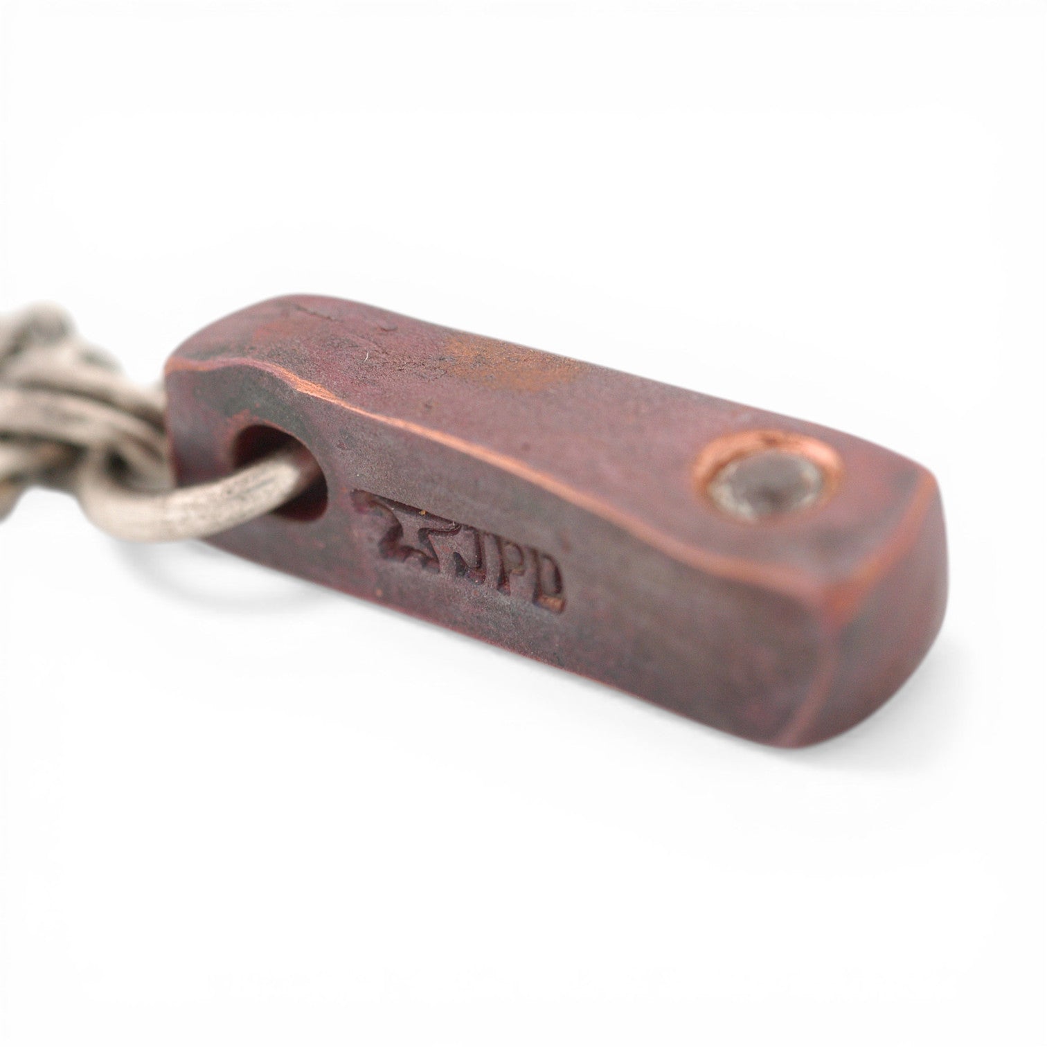 John Paul Designs Forged Series Copper Silo Pendant with natural heat patina, amazing Montana sapphire for accent.