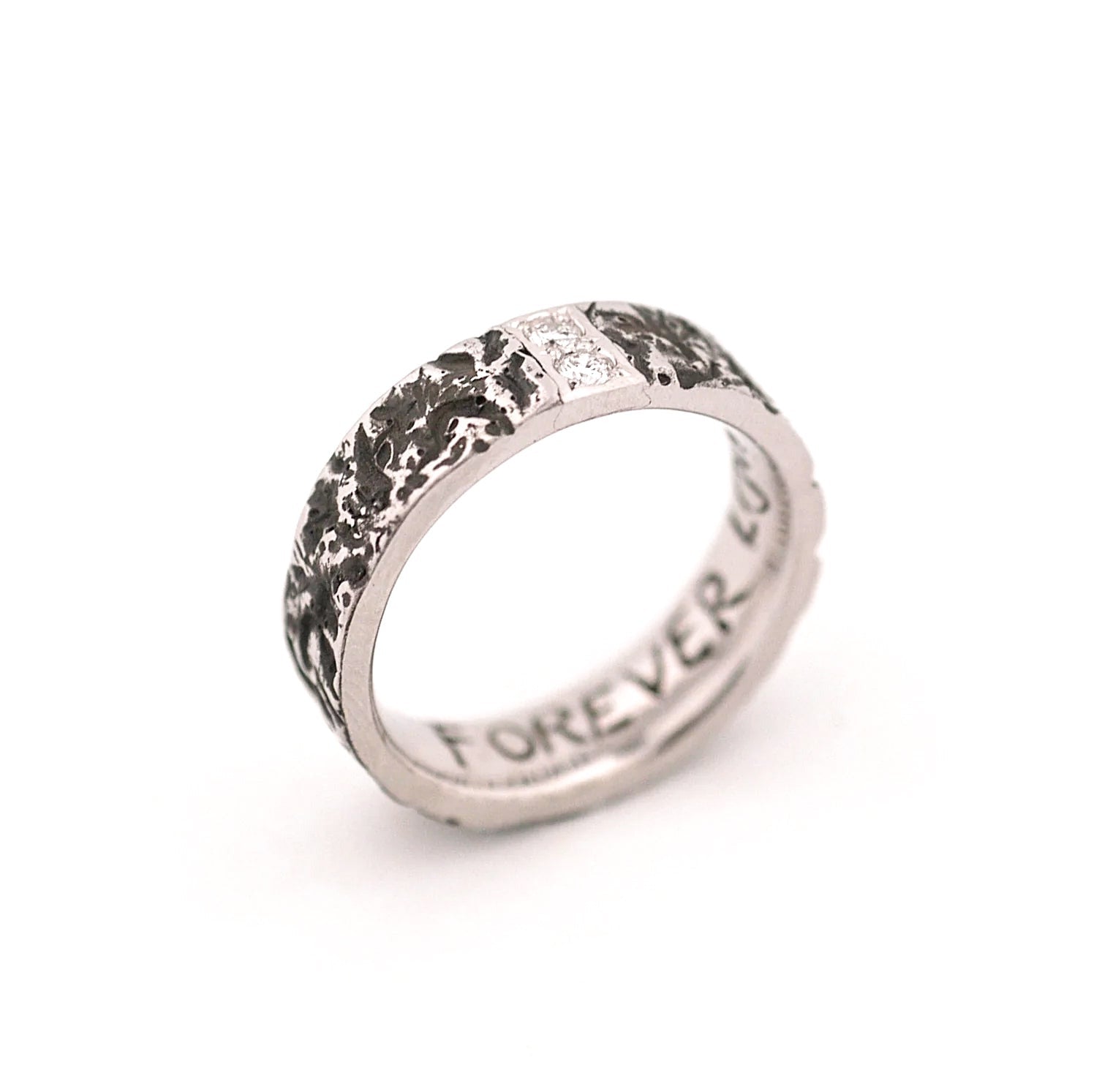Cobalt chromium, two ideal cut diamonds, engraving.