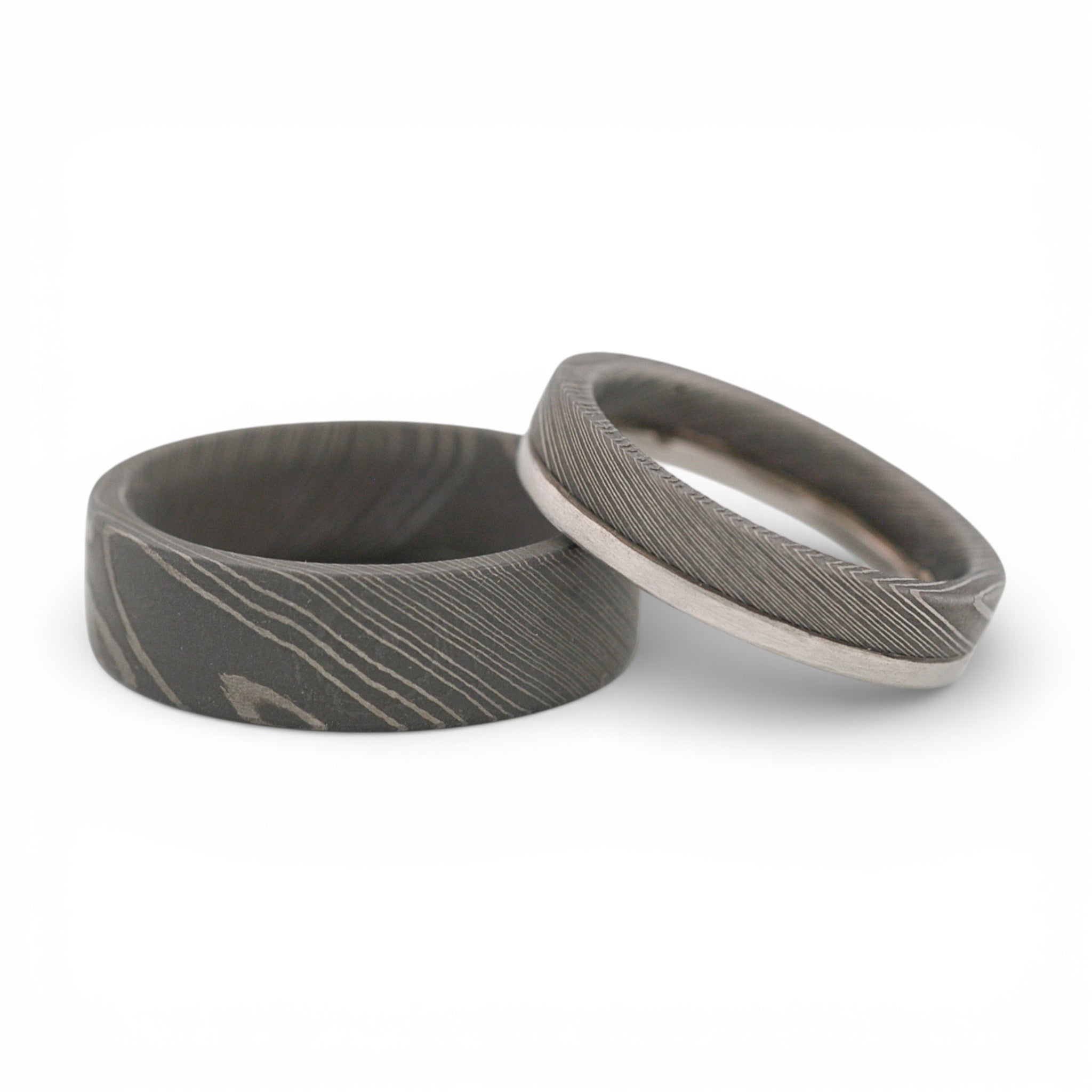 Damascus bands: one plain band - 7 mm wide, and another one is with a platinum edge.