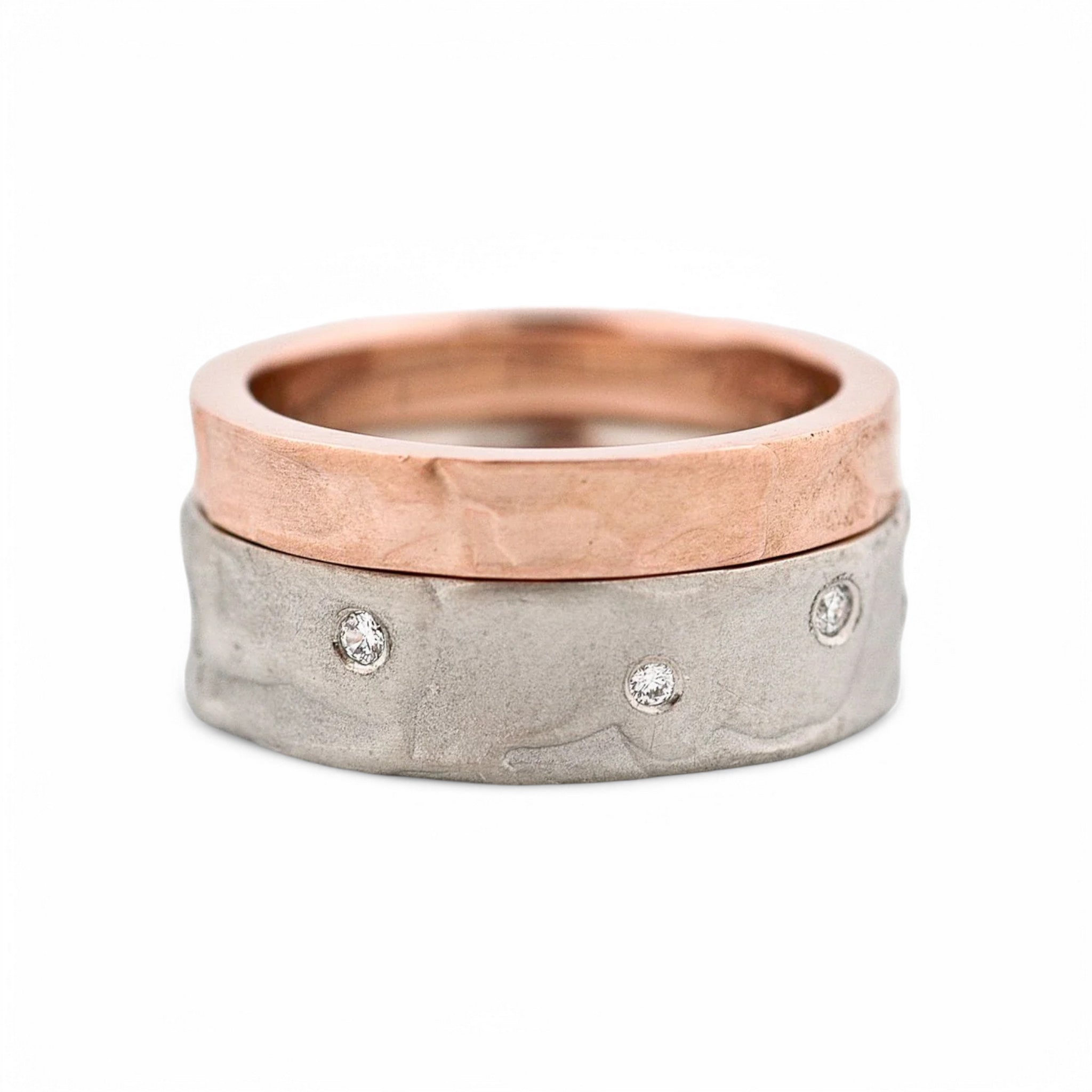 Textured 14K Rose Gold, and Palladium with White Diamonds.