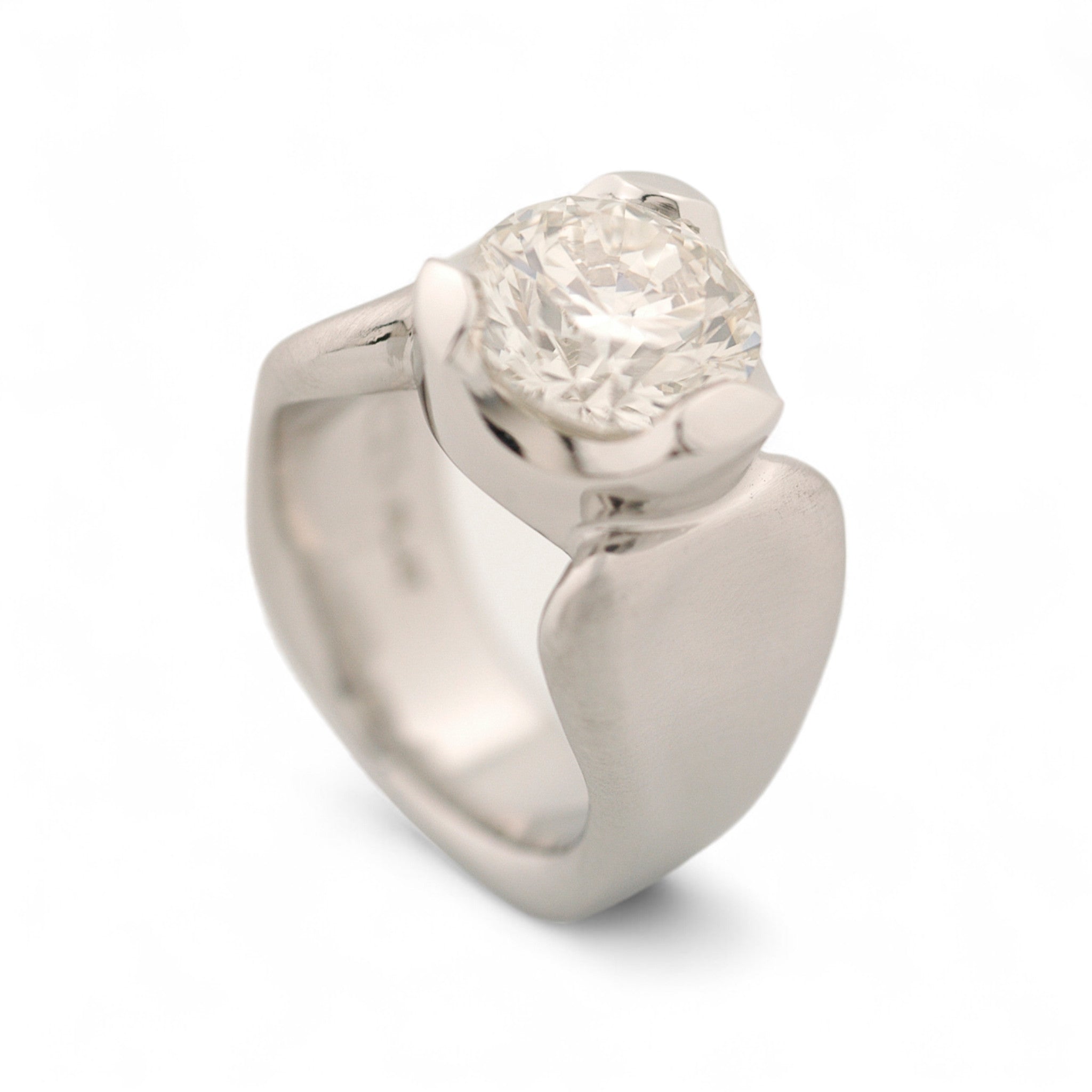 Platinum solitaire with signature three prong setting.